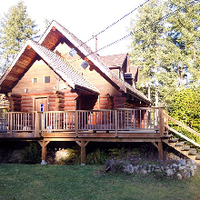 •A gorgeous 3 bedroom, 1 1/2 bathroom (sleeps 6) year-round waterfront log cabin in pristine Secret Cove. This private home sits on almost an acre of. . .
