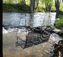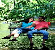 This cabin rental features a CREEK SWING that has become our guests favorite amenity! Its the perfectly unique spot to dangle toes into the rushing water . . .