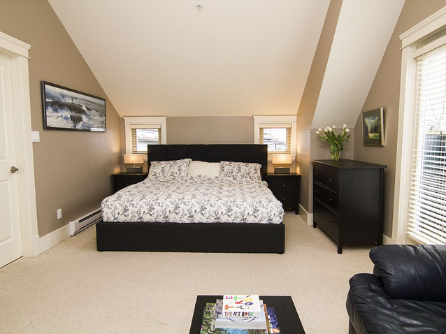 Our 3 level duplex home is located near downtown Vancouver (5 minute drive) and is only 4 blocks from the lively Commercial Drive. The large living space on the ground floor has 10ft ceilings with a deluxe 6 person hot-tub located on the backyard secluded patio. The master bedroom on the third floor has vaulted ceilings and a king size bed with a memory foam mattress. The guest room has a queen bed and the kids room as bunk beds that sleep two. Parking can be easily be found on the street in front of our home.