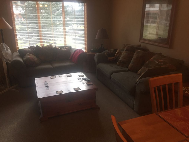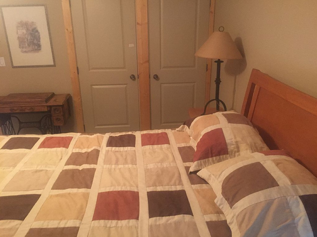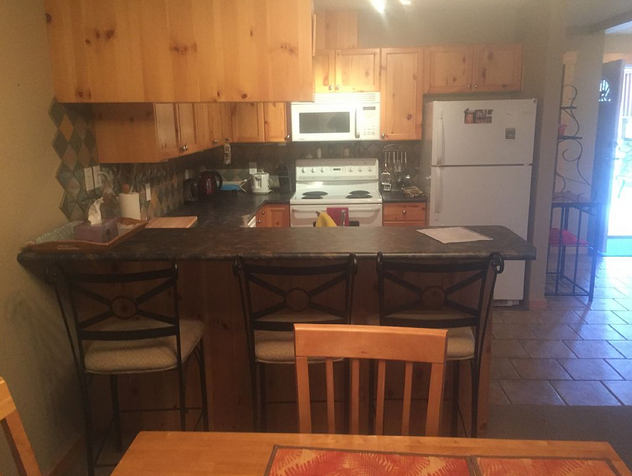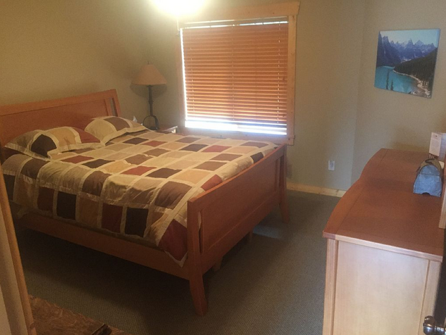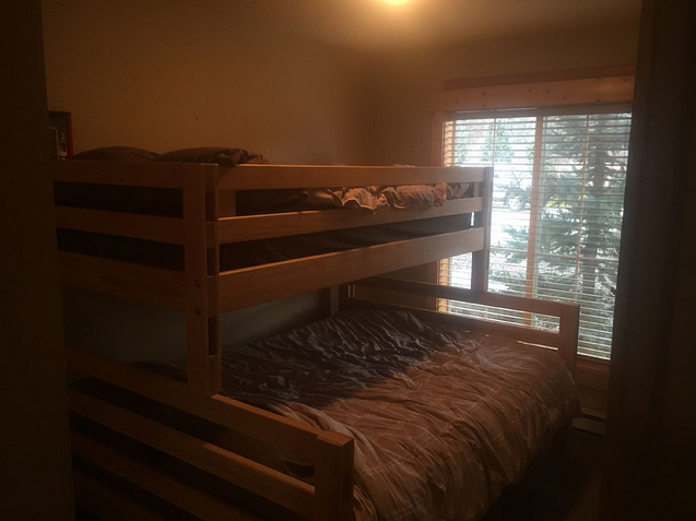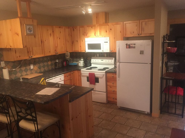 This spacious ground-level condo in the Pinnacle Ridge development, between the city of Fernie and the world-class Fernie Alpine resort has two bedrooms, a living/dining area with electric fireplace, a fully equipped kitchen and two bathrooms. One bedroom has a queen size bed, the other has a bunk bed with a queen on the lower and a single above as well as a pull-out sofa in the living room. It includes Wifi, cable and DVD. There is parking and a private gear lock-up as well as outside patio space opening onto communal green space with BBQ facilities available.