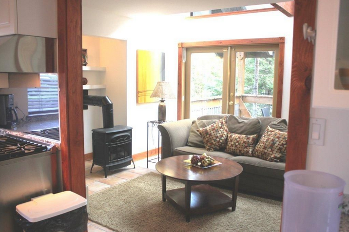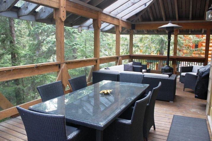 The chalet is a custom built view home located one km from the Creekside gondola/shopping area, where there is FREE parking and a SKI IN option, famous Dustys pub, Marketplace Groceries and a number of shops and restaurants. The cabin is a short walk from swimmable Alpha Lake and the Valley Trail (biking and running path that runs throughout Whistler). Perfect for year round vacations, enjoy swimming, biking, hiking at your doorstep.The home features soaring skylights, large feature windows, and French doors opening the house to a private, covered 600 sf deck. The outdoor area is an entertainers dream with a huge sectional sofa, dining for 10, outdoor grill, firepit and stunning mountain views. The kitchen has professional series appliances and extends to a large great room & dining area on one side, and to a cozy sitting area/tv room on the other. Living room has oversized sectional for large family/friend gatherings.