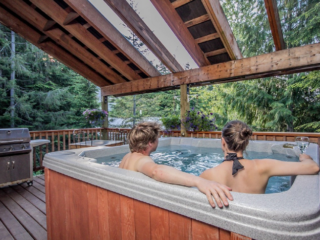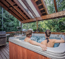 Our 8 person hot-tub is always ready and conveniently located on the covered deck.
