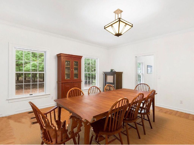 This beautiful home is situated in a spectacular private setting, just minutes to East Hampton and Sag Harbor villages. A true beach house at its finest, there is ample space for all with four bedrooms and two bonus rooms and a den. First floor provides a wonderful flow for entertaining, including a great room with fireplace, sun porch, spacious formal dining room, and an open kitchen leading out to the heated pool. The backyard features an expansive deck on over an acre of property. A true retreat and just minutes to the beach!