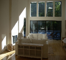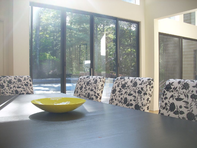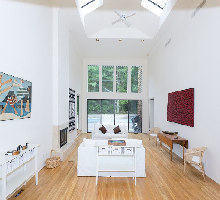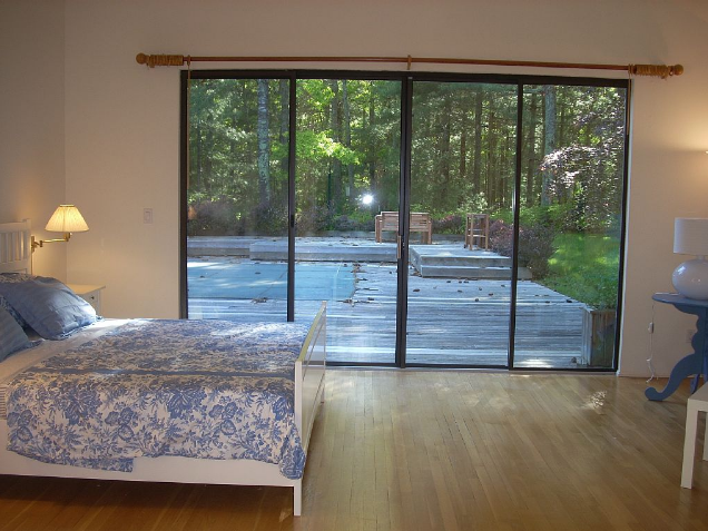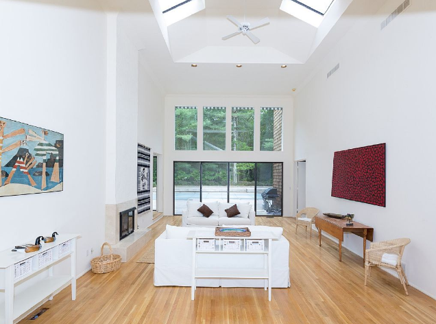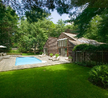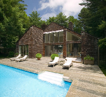 Contemporary house in a forest of pines . Very private 2 acre property and only a few miles from Bay Beaches and Ocean. Between Sag Harbor and East Hampton. Separate bedroom wings allow for privacy. Very large living areas with soaring ceilings allow for pleasing time together. 3000 feet new deck around heated pool allows for fun and entertainment. One level only is perfect for children . The house offers quiet time and close proximity to exciting spots
