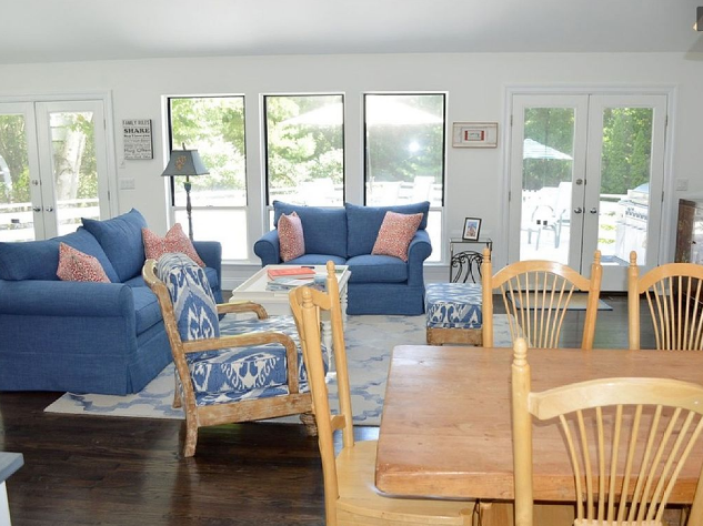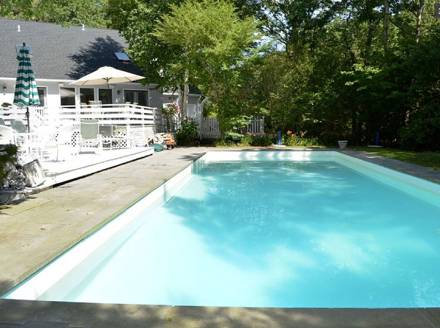 This light and airy vacation home nestled in picturesque East Hampton is just minutes from East Hampton Village and some of the most beautiful beaches Long Island has to offer. Delight in a recently updated and fully equipped kitchen, cozy up by the large stone fireplace, and relax outdoors on the sunny open deck after a dip in the swimming pool or hot tub. A finished basement offers plenty of indoor recreational area for little ones and adults alike to enjoy, and a 3 bedroom/ 2 bath floor plan provides ample space for your family, friends, and loved ones to make themselves comfortable. Find serenity this summer holiday in quiet and lovely East Hampton. Make yourself at home!