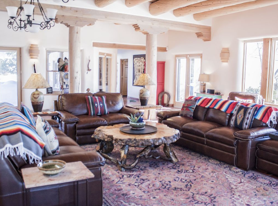 The other 5 bedrooms downstairs have their own en suite bathrooms, fireplaces and plenty of space. The last bedroom downstairs does not have an en suite bathroom but there is a bathroom close by. The views of the majestic Wheeler peak and Taos ski hill can be seen from every where in the house as well as the incredible New Mexico prairie landscape.