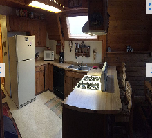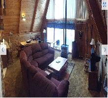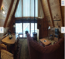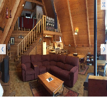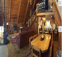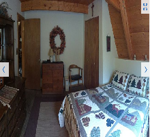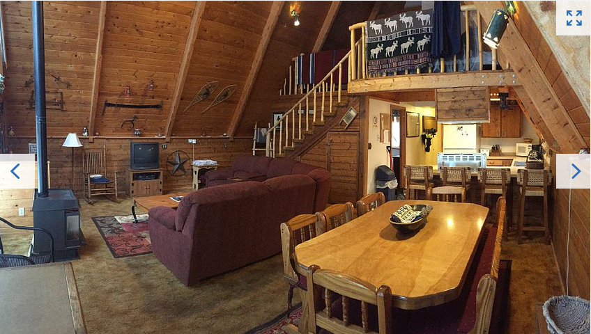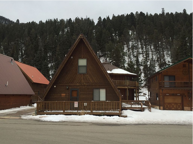 This centrally located A-frame is right off of Brandenburg Park (Red River City Center) with the river running 100 yards behind. Ski in, ski out with the Copper Chair approximately 300 yards away. The separate master bedroom is fitted with a queen bed with full bathroom (including bathtub) across the hall. The loft holds two full beds and 3/4 bathroom. From the loft, you can gaze down at the open layout of the living room and dining room with large windows facing towards the mountain. The L-shaped couch has two recliners and pulls out into a full bed. A perfect place to relax and enjoy the flat-screened tv after a day of skiing. The kitchen is fully stocked with coffee maker, and the dining room table seats eight.