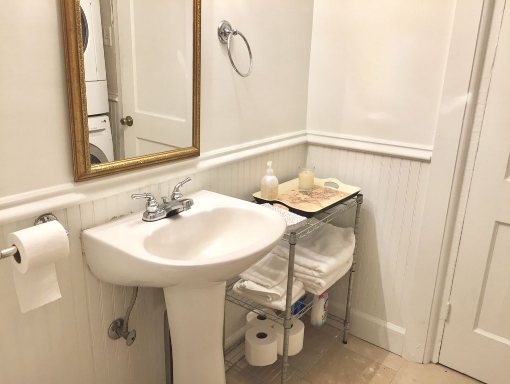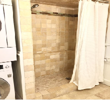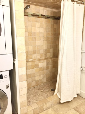 The bathroom has a big shower with new appliances. A hair dryer and ironing board will be included for your use. There is also a washer and dryer that you are welcome to use!