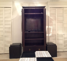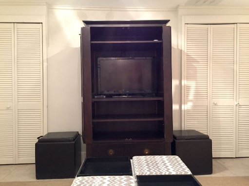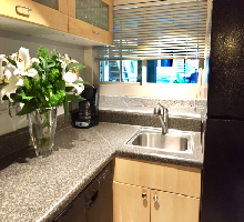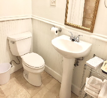 The comfortable living area is just steps away from the bedroom and includes a small dining area. The sofa converts to a queen bed. Free Wifi and Direct TV are included for all guests!
