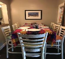 If you choose to eat in, our kitchen/pantry is fully equipped for the novice or gourmet cook. The dining room seats eight people and directly outside you will find plenty of more room on your large deck that is covered by a spectacular timber-framed roof.