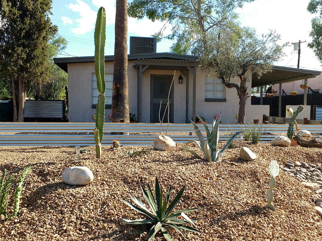 Our house is clean, comfortable, stocked, and near to restaurants, movies, shopping, golf course, the zoo, and walking paths. Its very close to U of A and downtown Tucson. The midtown location is full of quirky Tucson charm. The newly renovated living areas have your every need anticipated-even a bottle of wine for you! We have a nice rear seating area to enjoy the beautiful Tucson weather. The three bedroom layout with two baths make the house very spacious for long or short term visits alone or with family or friends. The two main rooms each have a queen bed to accommodate 4 people comfortably. We also have a third bedroom with a futon bed for an extra guest if needed. There is also a desk work space. The living room has a TV with a Netflix account and a DVD player. There is a second smaller TV in the third bedroom, also with Netflix. Books, magazines, and some board games are also available. The kitchen has all the essentials including a refrigerator, oven, microwave, and dishwasher. There are pots and pans, dishes, utensils, coffee machine, toaster, and various other gadgets you may need for your stay. We also keep the basics stocked such as salt, pepper, oil, flour, and sugar. We are happy to throw in any reasonable special request to make your arrival more relaxing. We look forward to hosting you during your next visit to Tucson!
