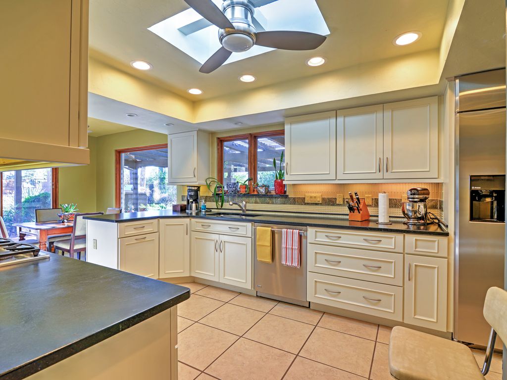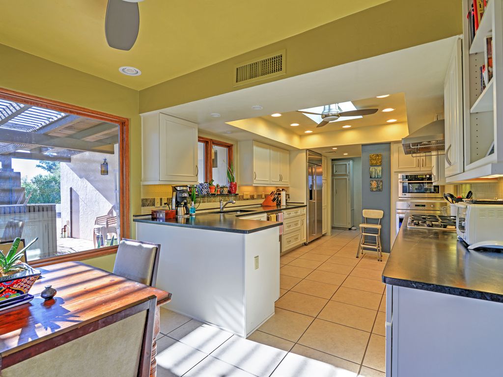 When youre up and about, head to the kitchen to make a fresh cup of joe in the Brazen coffee maker, or squeeze yourself some mouthwatering OJ in the citrus juicer. Spend your day outside by the pristine unheated swimming pool, relaxing in the professionally landscaped yard, and grilling up some juicy hamburgers for lunch on the gas BBQ. On chillier days, the outdoor fireplace will keep you warm. When the day winds down, head back inside to whip up a delicious dinner in the recently updated kitchen, complete with a gas Dacor cooktop and GE Monogram appliances. Take advantage of the Kitchenaid stand mixer to mix up some dessert. The dining room is a terrific place to enjoy family meals, boasting seating for 6 and expansive windows that frame the picturesque scenery.