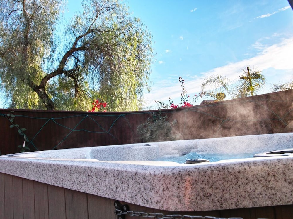 Listen to the coyotes yelp from the cozy comfort of this one bedroom casita. Shop at nearby Whole Foods then cook in the full kitchen or go out to the numerous ethnic restaurants. The casita is located in a quiet, rural, walkable neighborhood that is still an easy drive to downtown and the University. The pool is just steps away and you will have access to my hot tub and Nautilus circuit gym. The private back patio has a grill and a table for two.