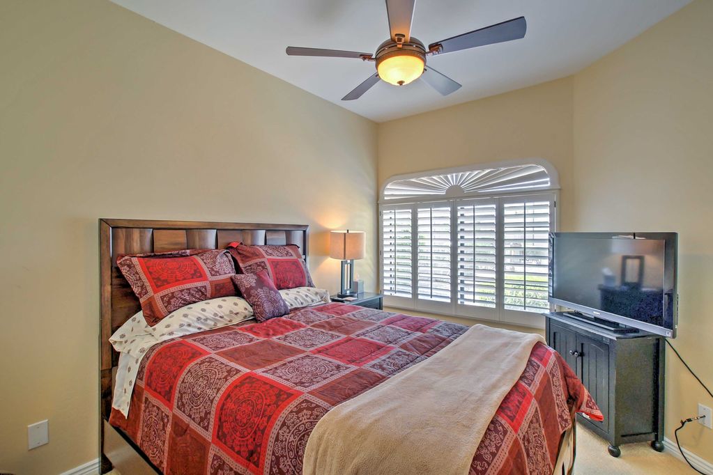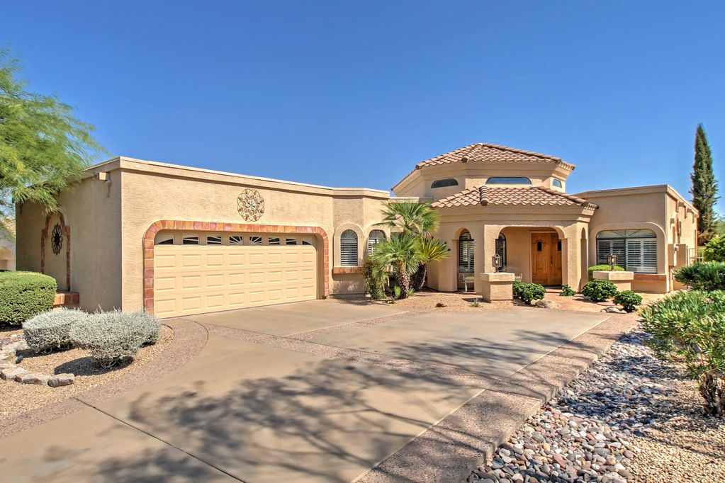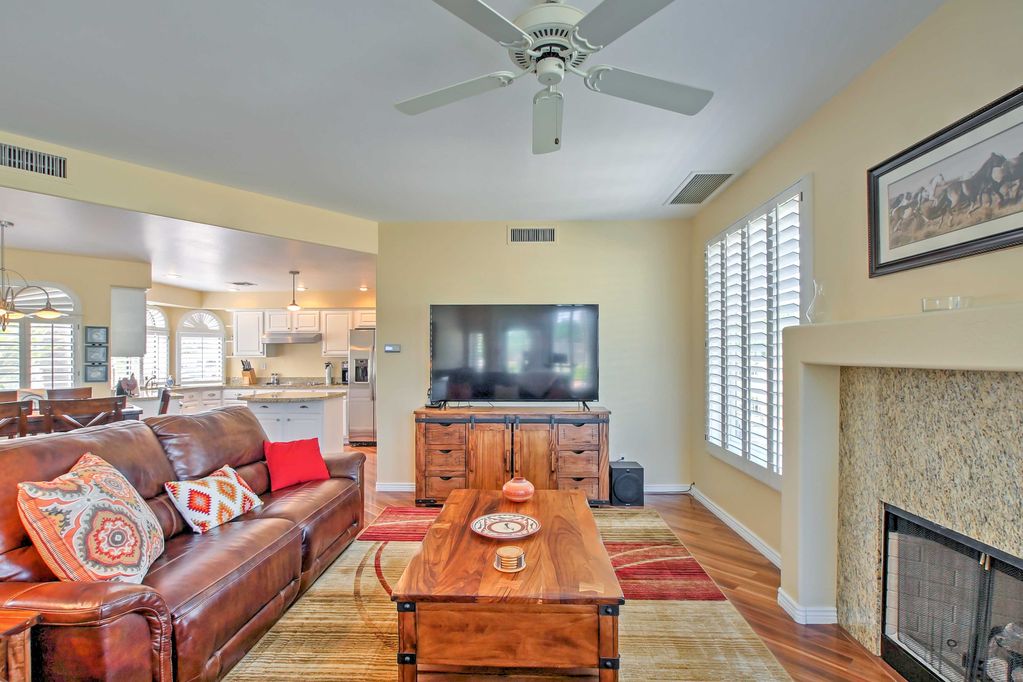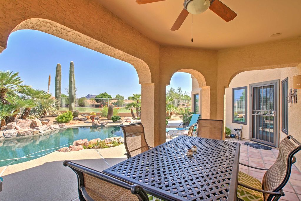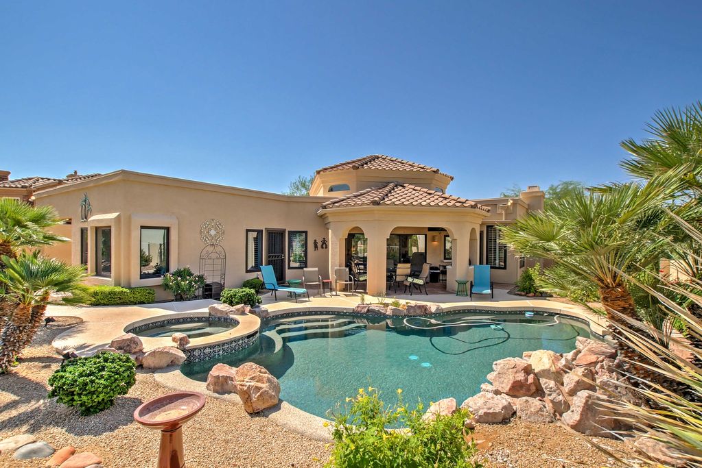 Experience luxury when you stay at this beautiful 3-bedroom, 2-bathroom vacation rental house in Mesa, Arizona! Boasting 2,220 square feet of living space, comfortable accommodations for 8, and a spectacular backyard, this home is the ultimate retreat for families, friends, or couples. Located on a private golf course, you’ll enjoy beautiful views from the pool, spa, or covered patio. No matter how you choose to spend your time in Mesa, this home is sure to provide an unforgettable vacation.