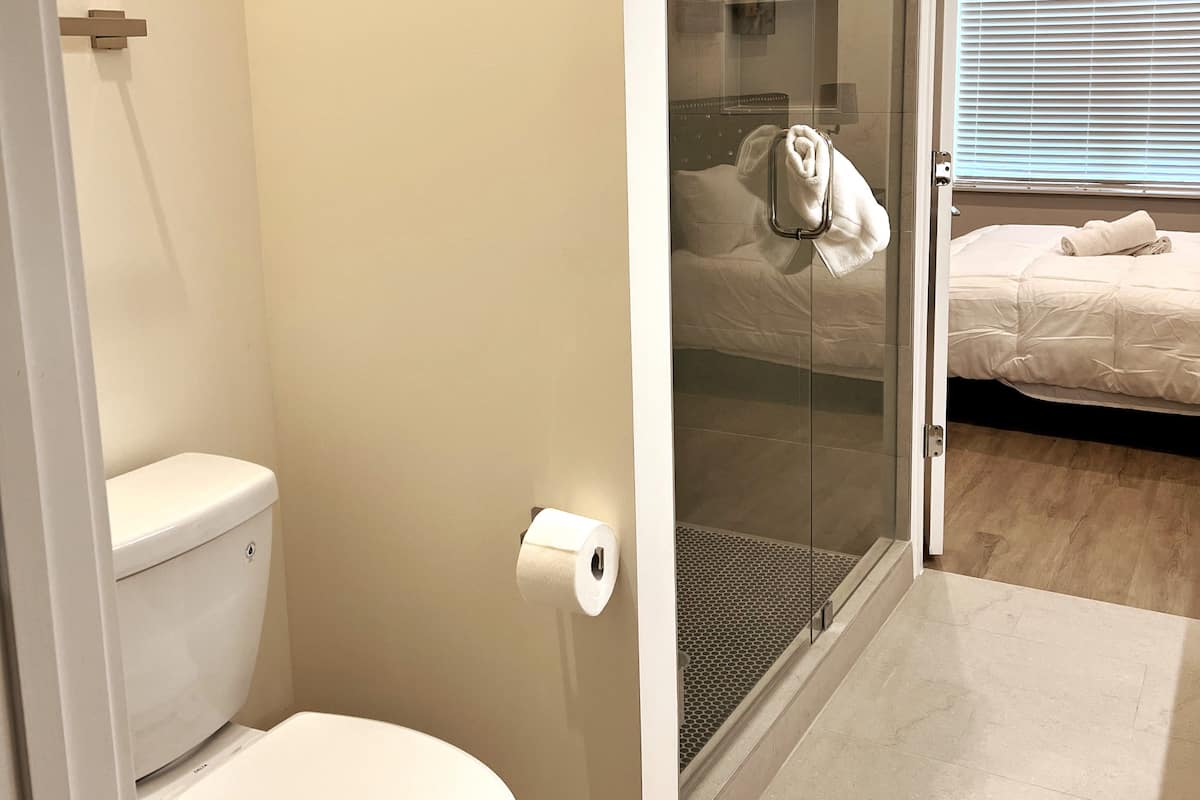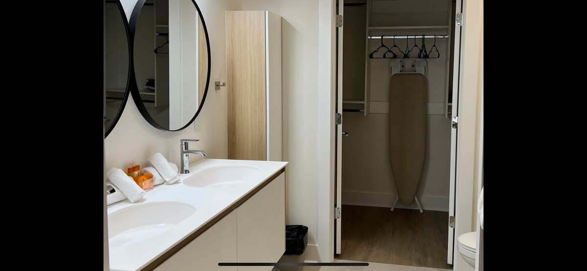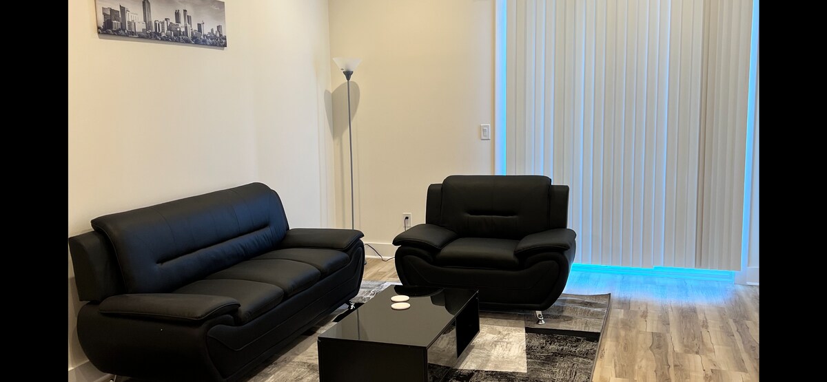 Private room with bathroom inside the room, master closet and the bathrooms within it. The living room space, kitchen and patio are the common shared areas.