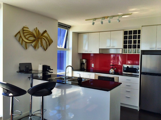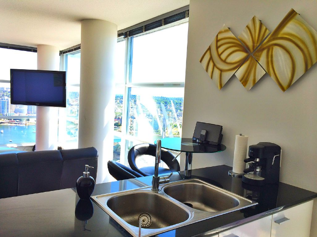 This gorgeous two bedroom, one bathroom suite on the 31st floor overlooks the stunning Vancouver False Creek skyline. Directly above Rogers Arena, adjacent to BC Place, and steps to Costco, Edgewater Casino, Queen Elizabeth Theatre, the Vancouver Playhouse, Library Square, and the Vancouver Public Library, guests are perfectly situated to enjoy all that Vancouver has to offer, from concerts and sporting events, to sprawling parks and beachfront.